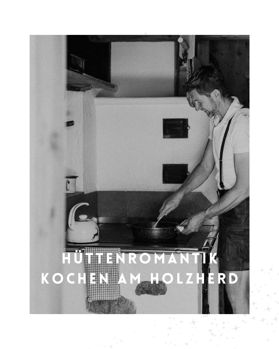 - Voll ausgestattete Wohnküche mit Holzherd – Kochen wie es sich auf der Alm gehört